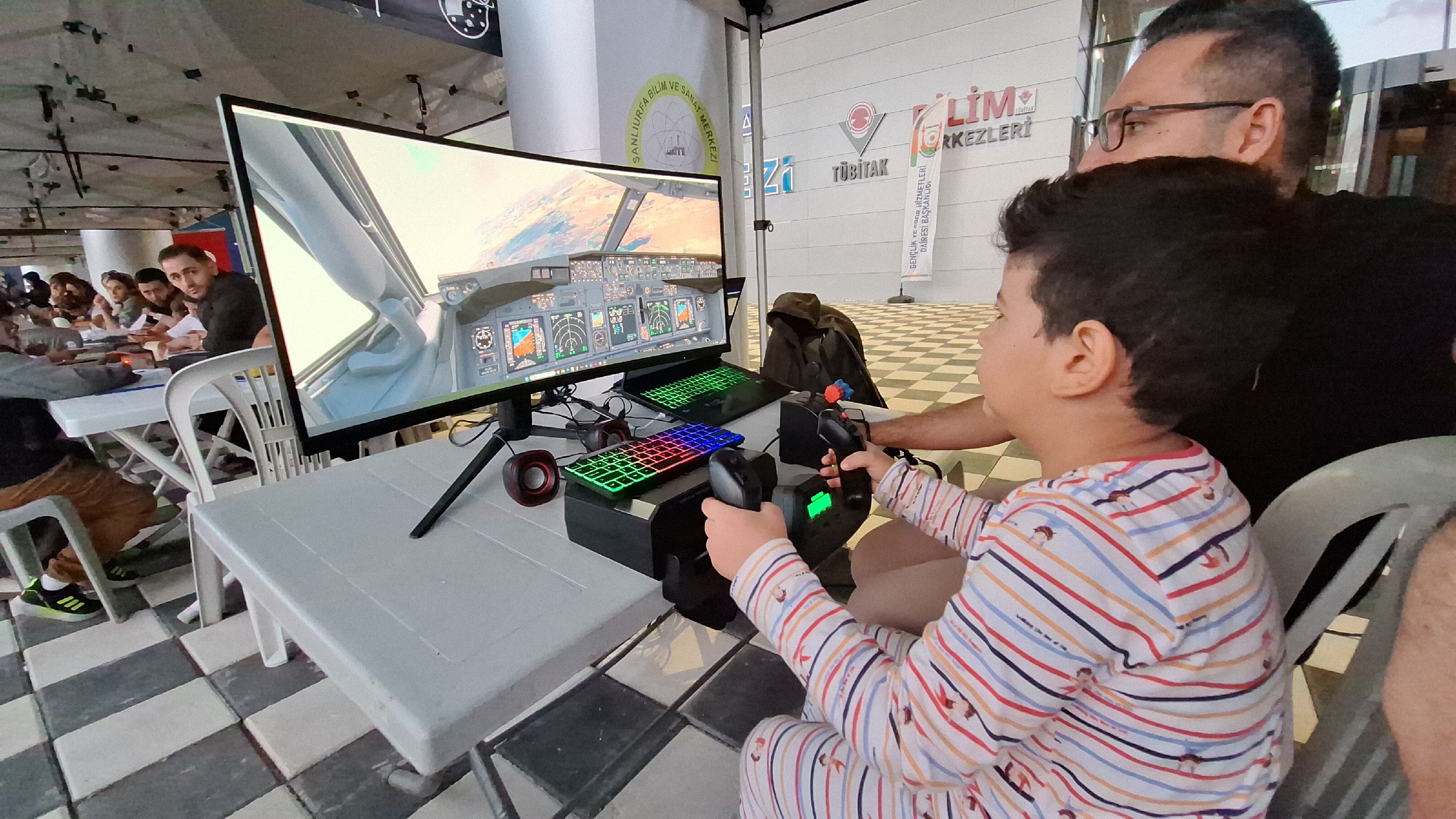 çocuklar, uçuş simülasyonu deneyimi yaşadı. Alanında uzman eğitmenlerin yer
