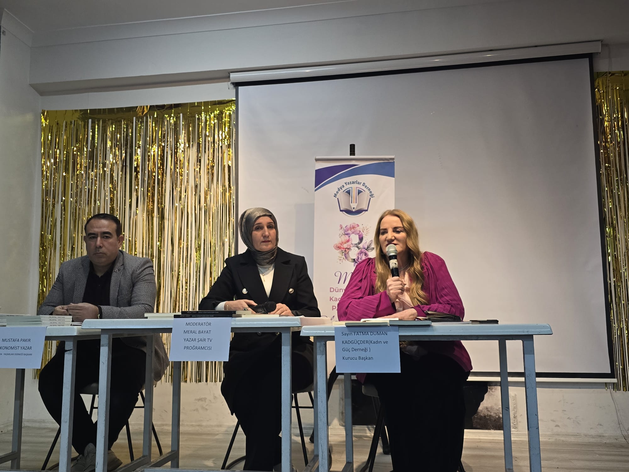 KADIN VE Güç Derneği Başkanı Fatma Duman ise konuşmasında kadın haklarının tarihsel süreçte nasıl şekillendiğine değinerek, günümüzde kadınların hâlâ pek çok alanda eşitlik mücadelesi verdiğini söyledi. Duman, özellikle kadına yönelik şiddetin önlenmesi için toplumsal farkındalığın artırılması gerektiğini vurguladı.