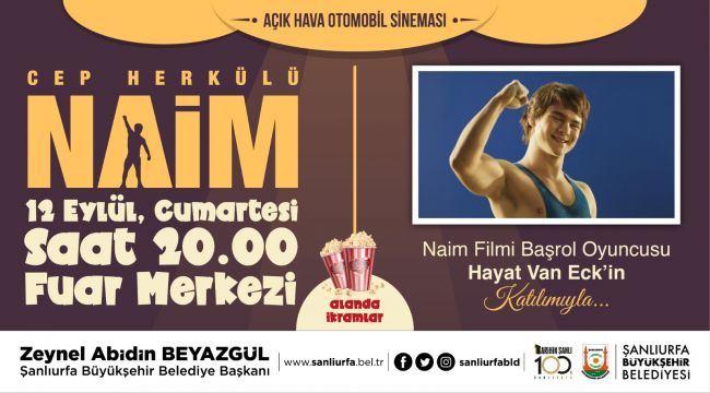 Rezervasyon sistemiyle yapılacak olan etkinlikte Şanlıurfalılara ilk olarak "Cep Herkülü Naim" adlı sinema filmi gösterilecek.