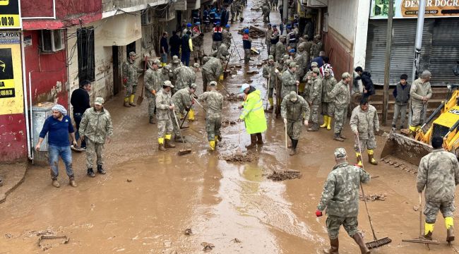 Temizlik çalışmalarına çevre illerden belediyeler de destek veriyor. Sokakların temizlenmesinde ise Mehmetçik büyük bir özveriyle çalışmalarını gecenin ilerleyen saatlerine kadar sürdürüyor.