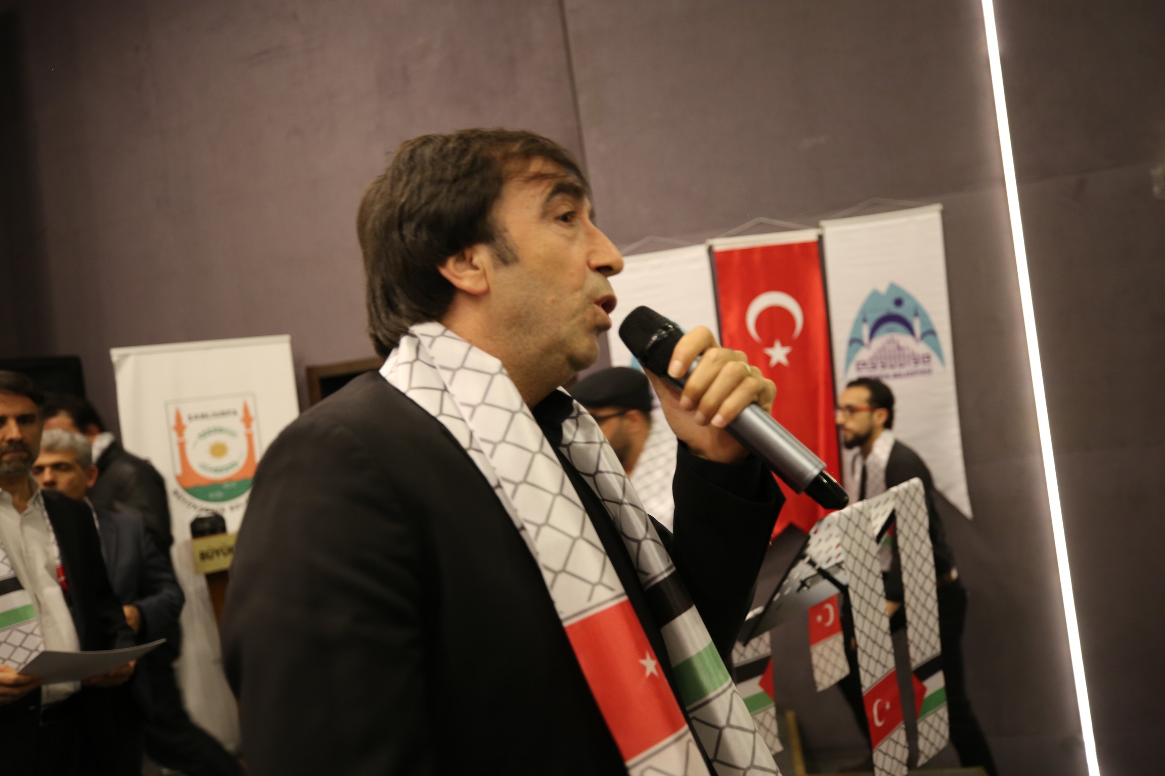 TYB Şanlıurfa Şube Başkanı Doç. Dr. Mahmut Kaya da program sonunda yaptığı konuşmada, “Kendilerine medeni denen insanlar, büyük bir barbarlıkla Gazze’ye, Filistin’e, insanlık ailesinin değerlerini yıkarcasına vahşice saldırmaktadır. Acı olan o ki, kendini dünyaya adil, özgürlükçü ve eşitlikçi olarak pazarlayan birçok batı devleti de bu vahşeti destekliyor ve arkasında duruyor. Filistin ve Gazze meselesi, sadece Arapların ya da Müslümanların meselesi değildir. Yaşanan bu barbarlık, aslında insanlık ailesine büyük bir saldırıdır. Çünkü insanlığın asırlardır biriktirmiş olduğu merhamet, kardeşlik, komşuluk, dayanışma gibi birçok değer, Siyonist devlet ve onu destekleyenler tarafından alt üst edilmektedir. Bu konuda şair ve yazarlarımız Eyyübiye Belediyesi işbirliğinde sözlerini, kalemlerini yücelttiler, Filistin’li kardeşleriyle dayanışmalarını gösterdiler. Sizler de buraya gelerek bu dayanışmaya destek oldunuz, hepinize teşekkür ederim” diye konuştu.