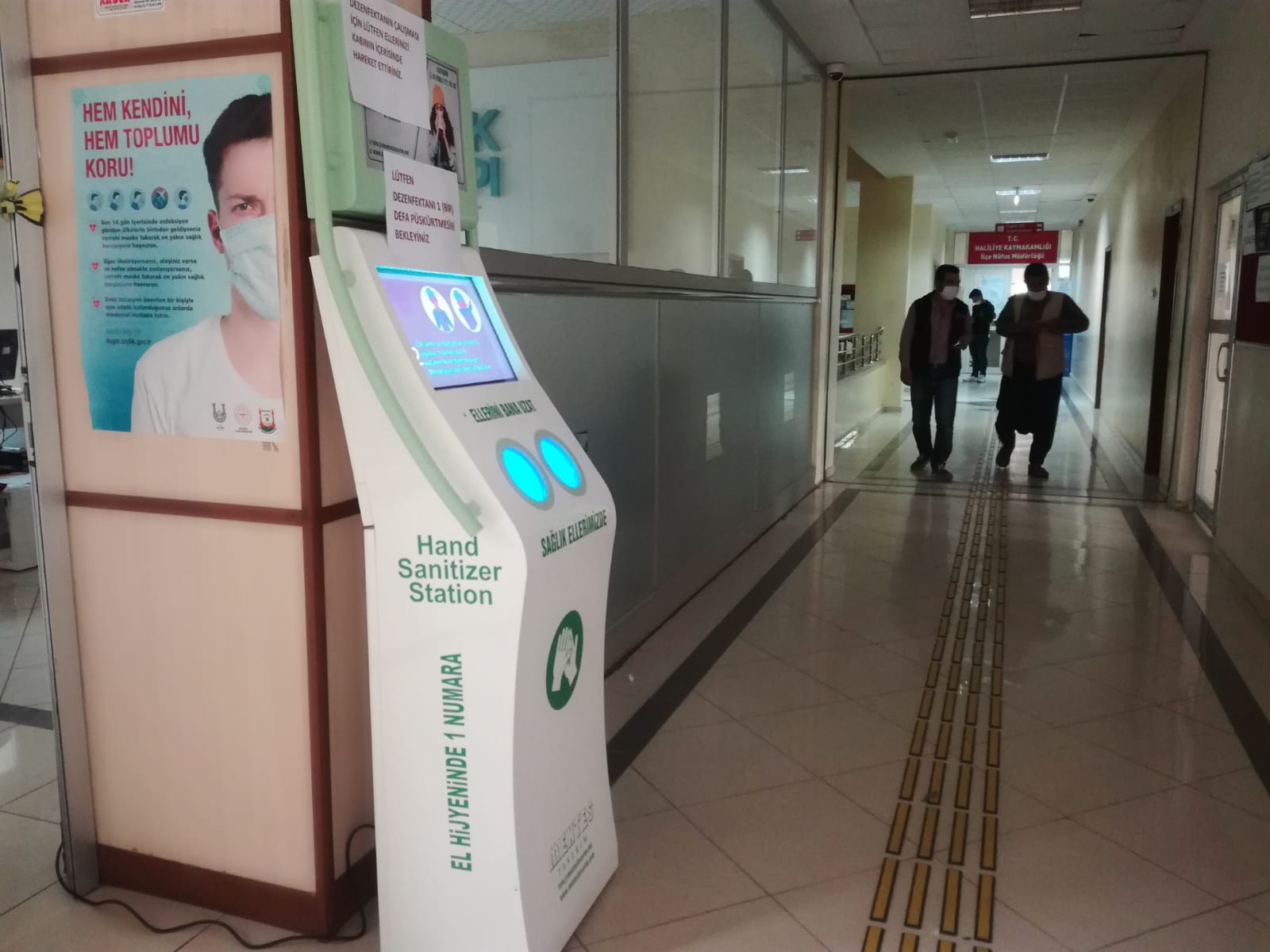 Koronavirüs salgınını önlemeye yönelik tedbirlerin alındığı Şanlıurfa Hükümet Konağında, yeni bir cihaz daha faaliyete alındı. Hem ultraviyole ışığı hem de alkollü dezenfektanı ile binaya giren vatandaşların ellerini temizleme imkanı bulduğu cihaz, sesli uyarıları ve ekranı ile de hijyen ve temizlik konusunda bilinçlendirmeye katkı sunuyor.