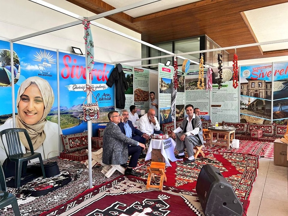 Belediye Başkanı Ayşe Çakmak, 4 gün sürecek olan tanıtım günlerinde Siverek standını ziyaret eden AK Parti Şanlıurfa Milletvekili, MKYK üyesi ve AB Uyum Komisyonu Başkanı Mehmet Kasım Gülpınar, Genel Merkez Yerel Yönetimler Başkan Yardımcısı Ayşe Sula ile birlikte ilçe stantlarını gezdi.