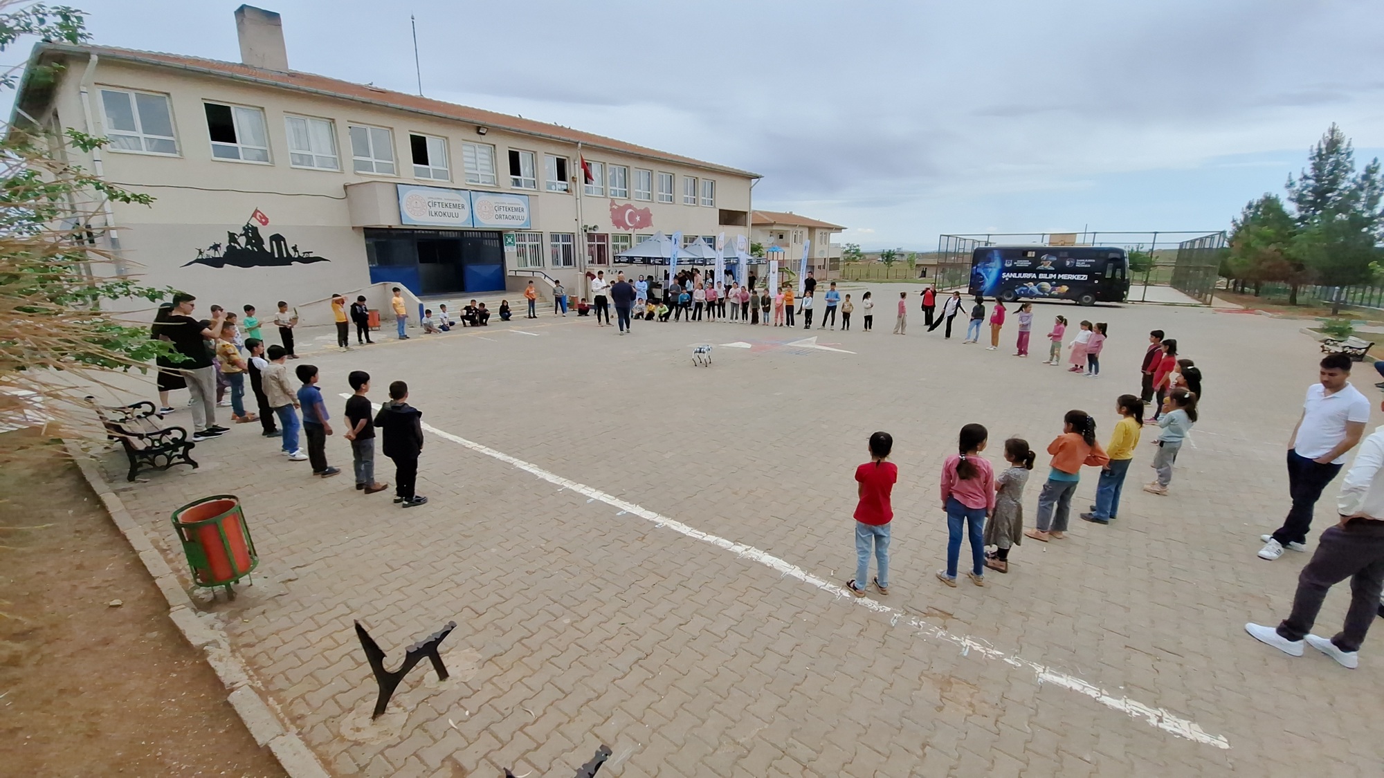 Yerinde Bilim Deneyimi sunan Şanlıurfa Bilim Merkezi, interaktif uygulamalarla öğrencileri bilimin eğlenceli yüzüyle tanıştırdı. Arama kurtarma köpeği ile yapılan gösteriler çocuklara hem moral hem de farklı bir deneyim sundu.