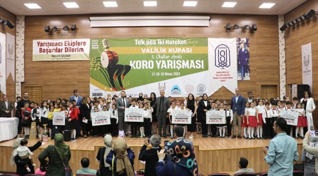 Şanlıurfa Valiliği himayelerinde Eyyübiye Belediyesi, İl Milli Eğitim Müdürlüğü ve ŞURKAV iş birliği ile “Tek Ses İki Hareket” Projesi kapsamında düzenlenen Valilik Kupası 3. Okullar Arası Koro Yarışması İlkokul kategorisi bugün tamamlandı.