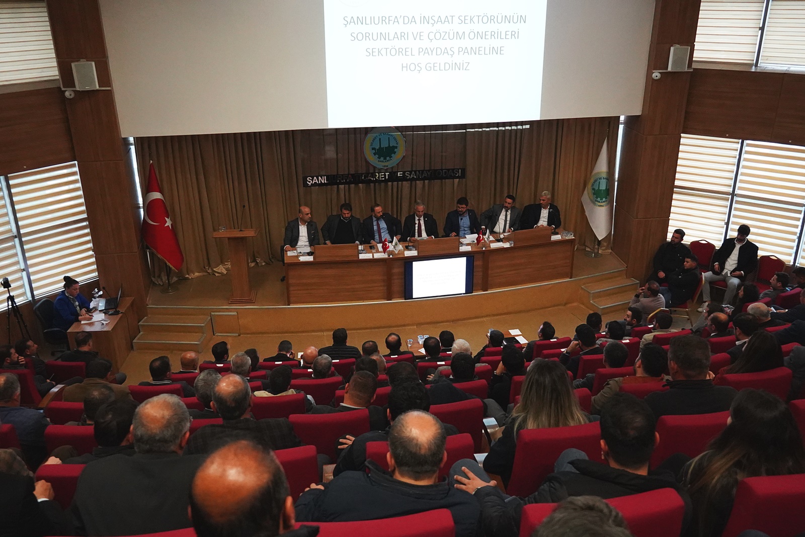 Harran Üniversitesi Mühendislik Fakültesi Dekanı Prof. Dr.Hüsamettin Bulut, Çevre Şehircilik ve İklim Değişikliği İl Müdürlüğü Yapı Denetim Şube Müdürü Yahya Ceyran, Şanlıurfa Büyükşehir Belediyesi İmar ve Şehircilik Daire Başkanı Hikmet İnan, Haliliye Belediye İmar Müdürü Ahmet Ayık, Eyyübiye Belediye İmar Müdürü İbrahim Gürcü, Karaköprü Belediye Yapı Kontrol Müdürü Mehmet Mızrak, TMMOB İl Koordinasyon Kurulu Genel Sekreteri Fikret Çakır ile Şanlıurfa Müteahhitler Derneği Başkanı Mustafa Aşıklıoğlu, ŞUTSO Meclis Başkanı Serhat Karadağ, Komite Başkanları ve sektör temsilcilerinin katılımıyla ŞUTSO Meclis Toplantı Salonu’nda gerçekleştirilen “Şanlıurfa’da İnşaat Sektörünün Sorunları ve Çözüm Önerileri” konulu Sektörel Paydaş Paneli, ŞUTSO Yönetim Kurulu Başkanı Mehmet Yetim’in açılış konuşmasıyla başladı.