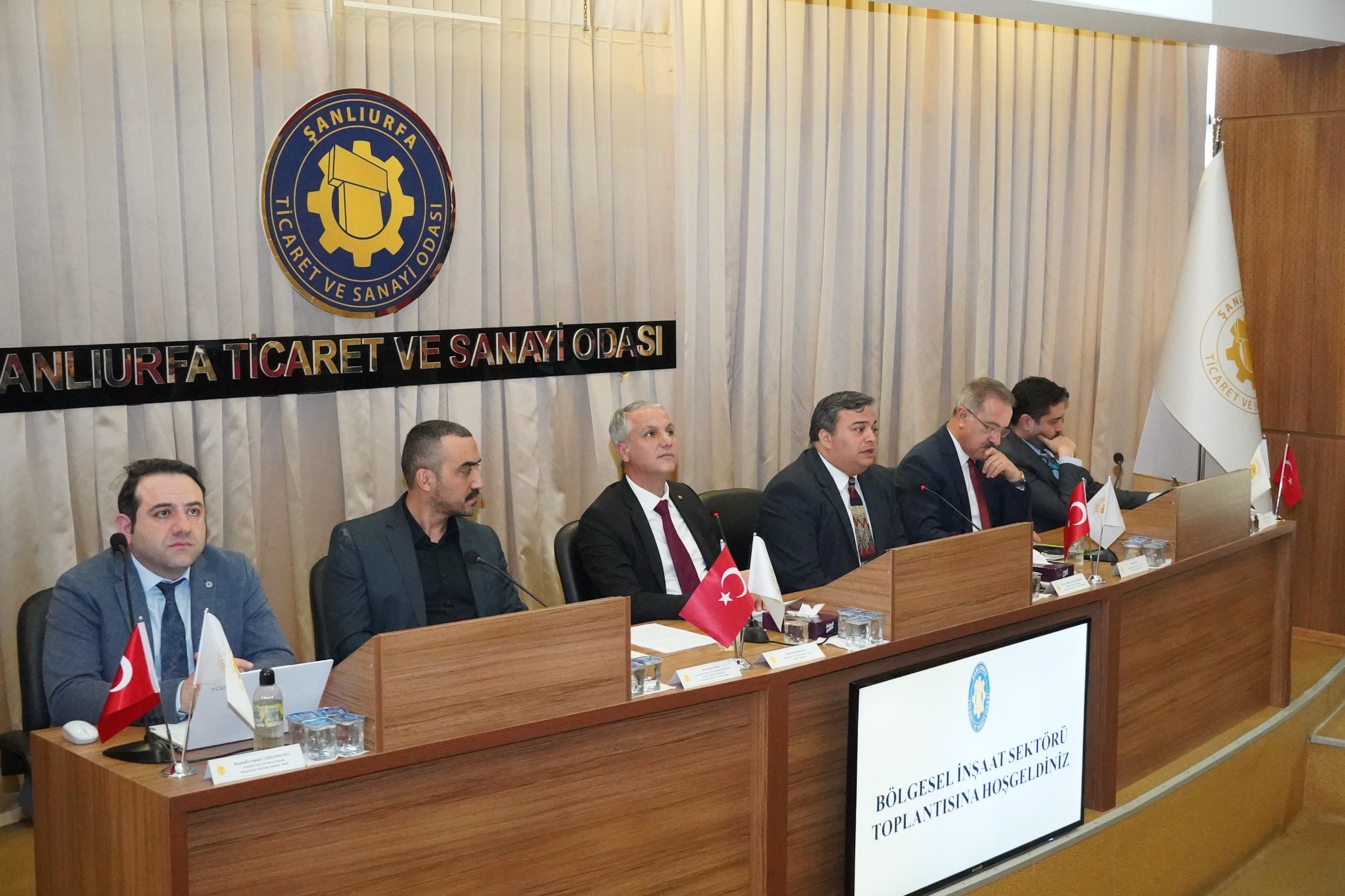 Şanlıurfa Ticaret ve Sanayi Odası’nın (ŞUTSO) organize ettiği “Bölgesel İnşaat Toplantısı” ŞUTSO’da düzenlendi. Programa, Çevre Şehircilik Ve İklim Değişikliği Bakanlığı Kentsel Dönüşüm Başkanlığı Dönüşüm Alanları 6 Dairesi Başkanı Mustafa İnan, Çevre Şehircilik Ve İklim Değişikliği İl Müdürü Hüseyin Aras, Şanlıurfa Büyükşehir Belediyesi Kentsel Dönüşüm Daire Başkanlığı, Şanlıurfa Büyükşehir Belediyesi İmar Ve Şehircilik Daire Başkanlığı, Haliliye Belediyesi Başkanlığı İmar Müdürlüğü, Karaköprü Belediye Başkanlığı İmar Müdürlüğü, Eyyübiye Belediye Başkanlığı İmar Müdürlüğü, Harran Üniversitesi Kentleşme Ve Çevre Sorunları Ana Bilim Dalı Başkanı Prof.Dr. Mithat Arman Karasu, TOBB Sektör Meclis Sorumlusu Neslihan Doğan, TOBB Odalar Ve Borsalar Birliği Uzman Yardımcısı Kadir Akalın, ŞUTSO Yönetim Kurulu Başkanı Mehmet Yetim, ŞUTSO Meclis Başkanı Serhat Karadağ, ŞUTSO Yönetim Kurulu ve Meclis Üyeleri, ŞUTSO Hukuk Müşaviri Av.Cüneyd Altıparmak, Adıyaman Ticaret Ve Sanayi Odası Başkanı Mehmet Torunoğlu, Adıyaman Ticaret Ve Sanayi Odası Yönetim Kurulu ve Meclis Üyeleri, Diyarbakır Ticaret ve Sanayi Odası, Antakya Ticaret Ve Sanayi Odası, Gaziantep Ticaret Odası, Malatya Ticaret ve Sanayi Odası,Tügem Tüm Girişimci Emlak Müşavirleri Derneği Başkan Vekili Mustafa Hakan Özelmacıklı, Orkent İnşaat İmar San.Ve Tic.A.Ş Yönetim Kurulu Başkanı Nihat Şen, Şanlıurfa İnşaat Mühendisleri Odası İl Temsilcisi Berat Mahsun Kaya, Şanlıurfa Jeoloji Mühendisleri Odası Başkanı Abdulvahap Bayram, Şanlıurfa İç Mimarlar Odası Başkanı Nedim Çiçek, Çevre Mühendisleri Odası Başkanı M. Selim Acar, Şehir Plancıları Odası Başkanı Mehmet Selim AÇAR, Şanlıurfa Mimarlar Odası Şube Başkanı Pirkan Kılıç, Şanlıurfa Harita Ve Kadastro Mühendisleri Odası Başkanı Mustafa Güzeller ve kamu kurum ve kurulu temsilcileri ile basın mensupları katıldı.