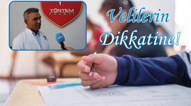 Özel Yöntem Koleji Kurucusu Eğitim Uzmanı Mustafa Yıldırım, yaptığı açıklama ile tüm velilere seslenerek TYT ile AYT sınavlarına girecek öğrenciler için bazı uyarılar yaparak tavsiyelerde bulundu.