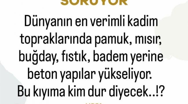 Unutulmamalı ki aç kaldığımızda tuğla, brikette değil, tarlada yetişeni yemek isteyeceğiz. “Bu topraklar bize atalarımızdan miras değil, çocuklarımıza emanettir”…