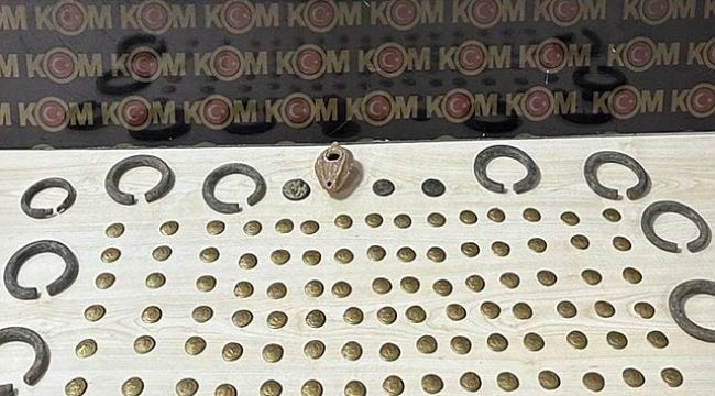 İlçe Emniyet Müdürlüğüne bağlı ekiplerin gerçekleştirdiği çalışmalarda; 93 adet Roma dönemine ait sikke, 9 adet Urartu halka bileziği ve 1 adet toprak kandil ele geçirildi.