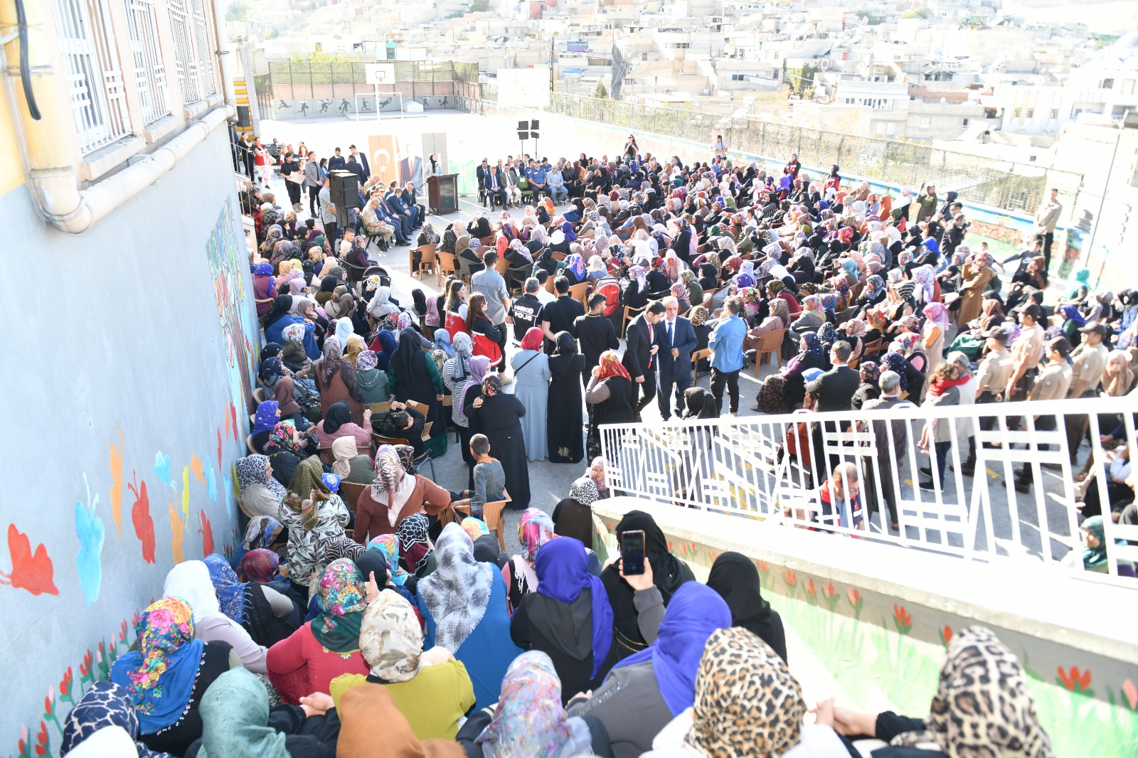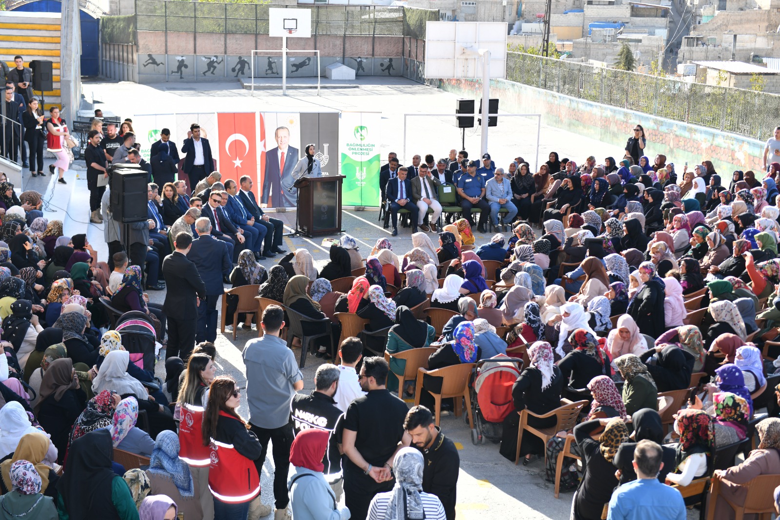 Programa Vali Hasan Şıldak’ın yanı sıra, Eyyübiye Kaymakamı Yusuf Turan, Eyyübiye Belediye Başkanı Mehmet Kuş, İl Emniyet Müdürü Atilla Aksoy, İl Jandarma Komutanı Vekili Albay Rıfat Tamer Aksoy, İl Milli Eğitim Müdürü Asım Sultanoğlu, İl Sağlık Müdürü Erhan Berk, Gençlik ve Spor İl Müdürü İsa Yazıcı, Aile ve Sosyal Hizmetler İl Müdürü Fatih Yılmaz, İl Müftüsü Ramazan Toplan, Yeşilay İl Başkanı İsmail Güneş, Açık Kapı Şube Müdürü Ali Kemal Sevinç, Sosyal Yardımlaşma ve Dayanışma Vakfı Müdürü Şehmus Kahraman, İl Sağlık Müdürlüğü Bağımlılıkla Mücadele Birimi Personelleri, kamu kurum ve kuruşluların temsilcileri ile anneler ve mahalle sakinleri katıldı.