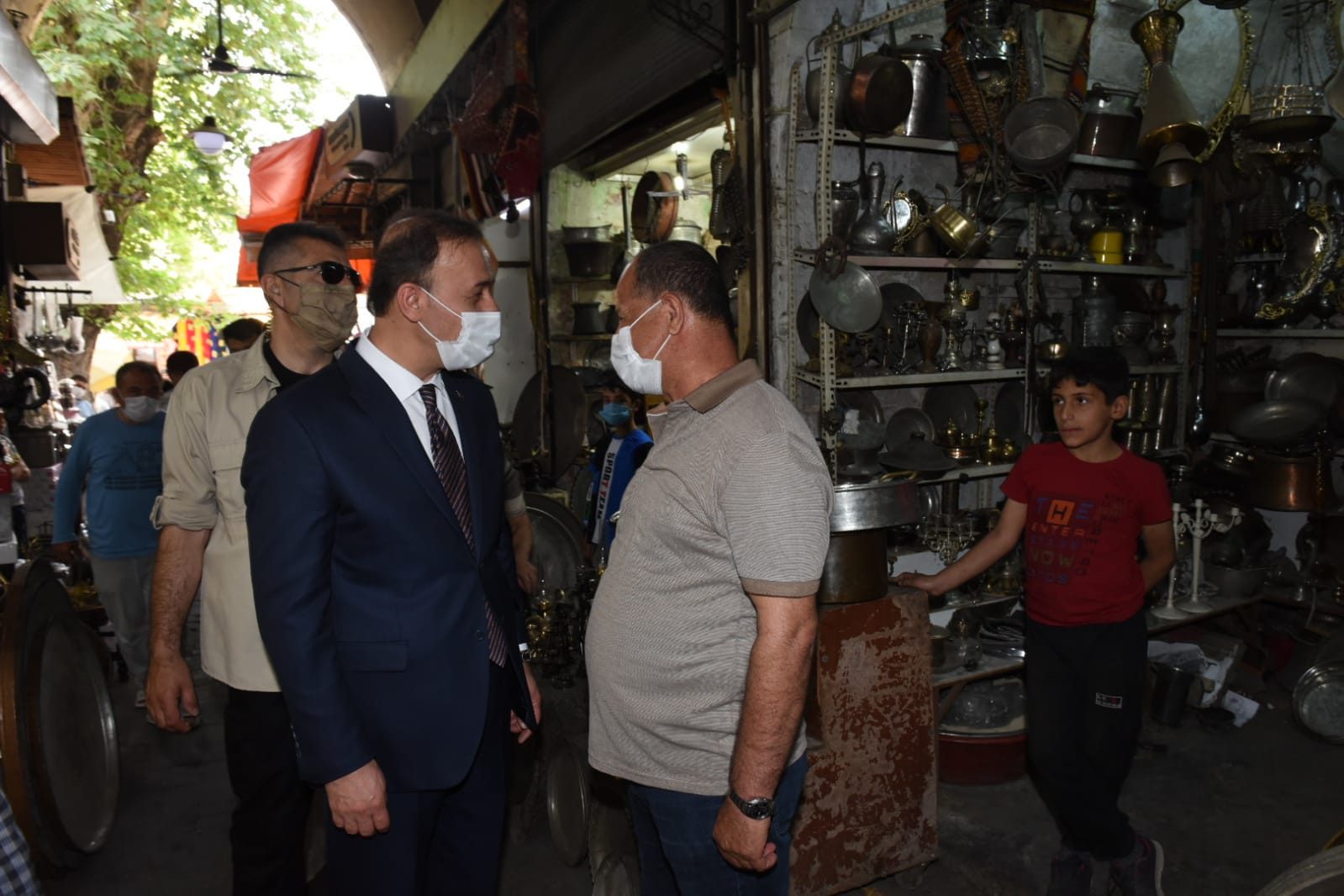 Bulduğu her fırsatı halkla iç içe geçiren Şanlıurfa Valisi Abdullah Erin, bugün de şehrin en kalabalık merkezlerinden olan Haşimiye Meydanı ve tarihi hanlar bölgesindeydi.