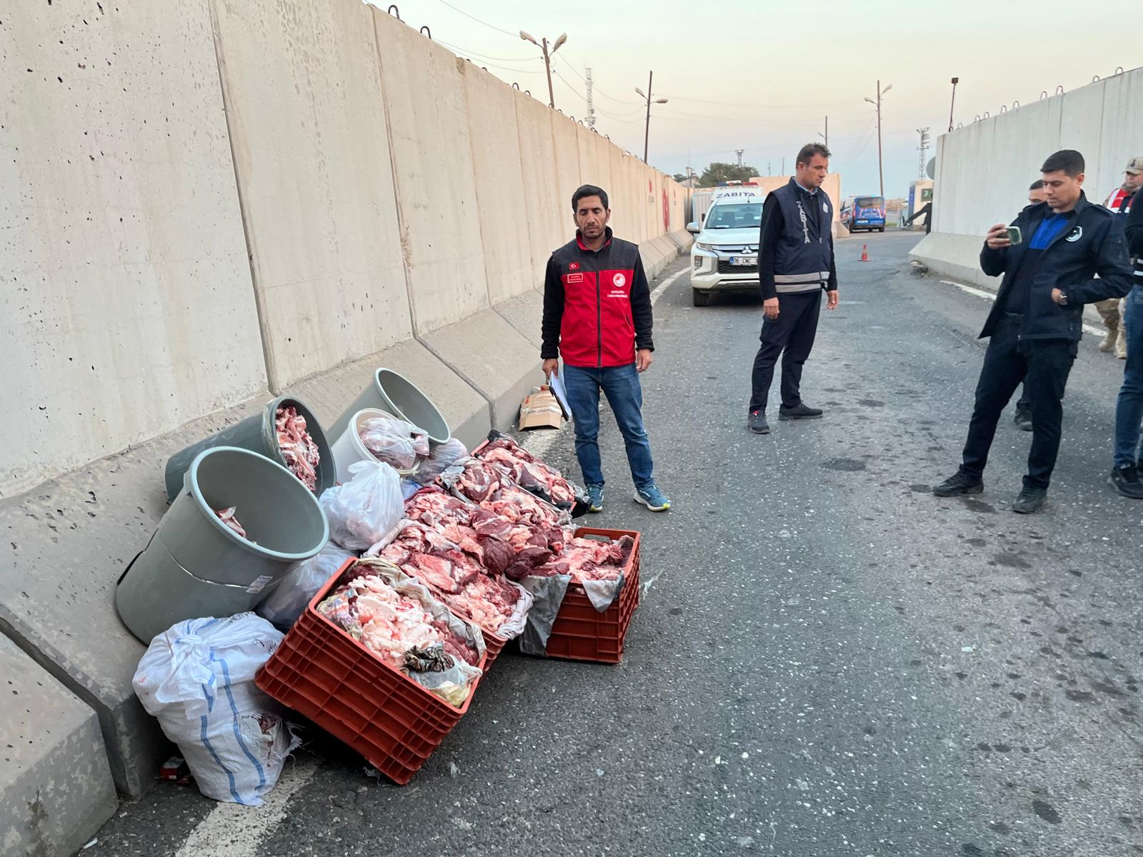 Operasyonda ele geçirilen yaklaşık 1 ton kaçak et, imha edilmek üzere zabıta ekiplerine teslim edildi.