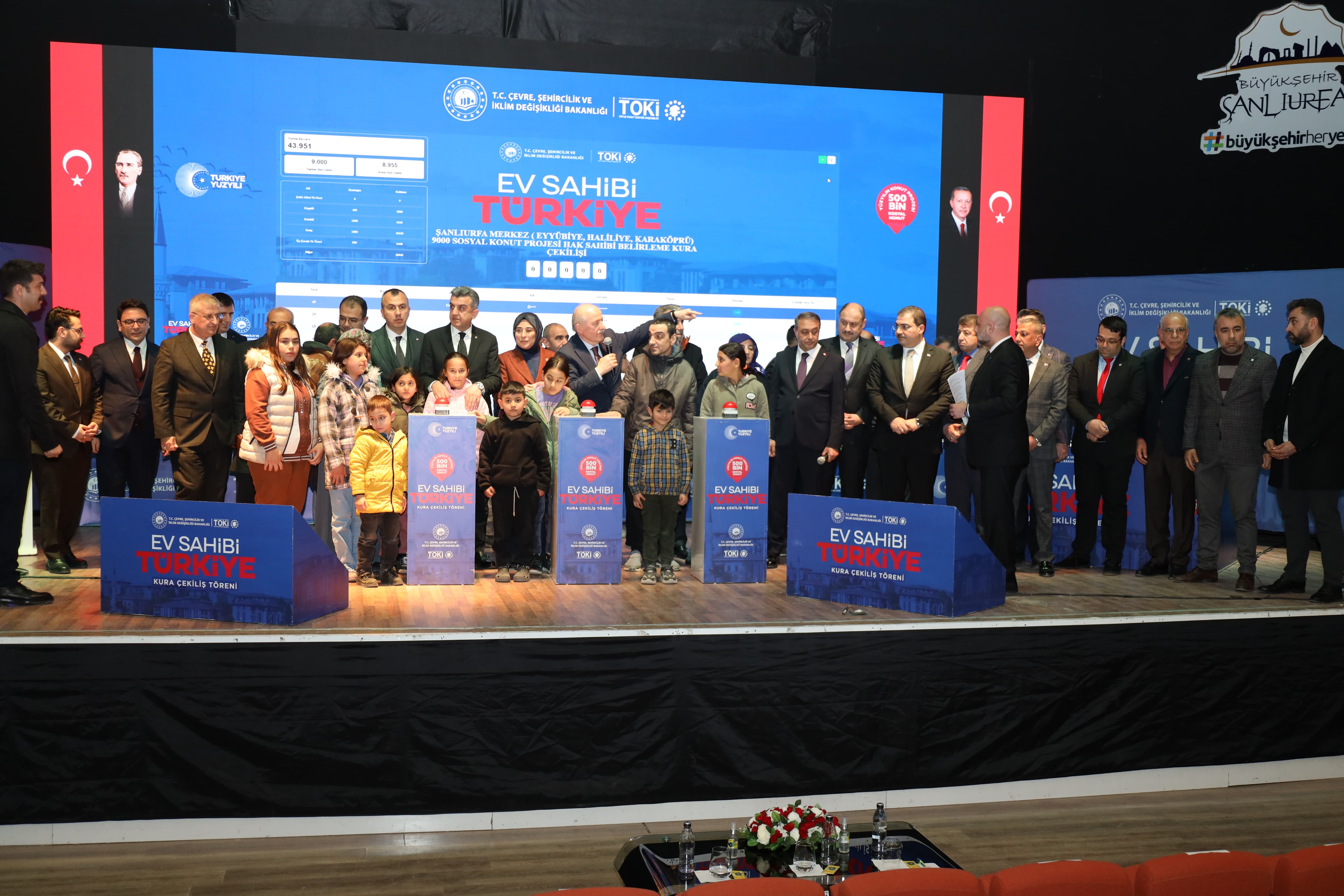 Çevre, Şehircilik ve İklim Değişikliği Bakan Yardımcısı Hasan Suver, AK Parti Şanlıurfa İl Başkanı Mehmet İlhami Günbegi, Şanlıurfa Valisi Hasan Şıldak, Şanlıurfa Büyükşehir Belediye Başkanı Mehmet Kasım Gülpınar, İl Protokolü ve vatandaşların katılımıyla Evimiz Türkiye Yüzyılın Sosyal Konut kampanyası kapsamında Şanlıurfa'da yapılması planlanan 13.790 konut için Hak Sahipliği Belirleme Kurası yapıldı.