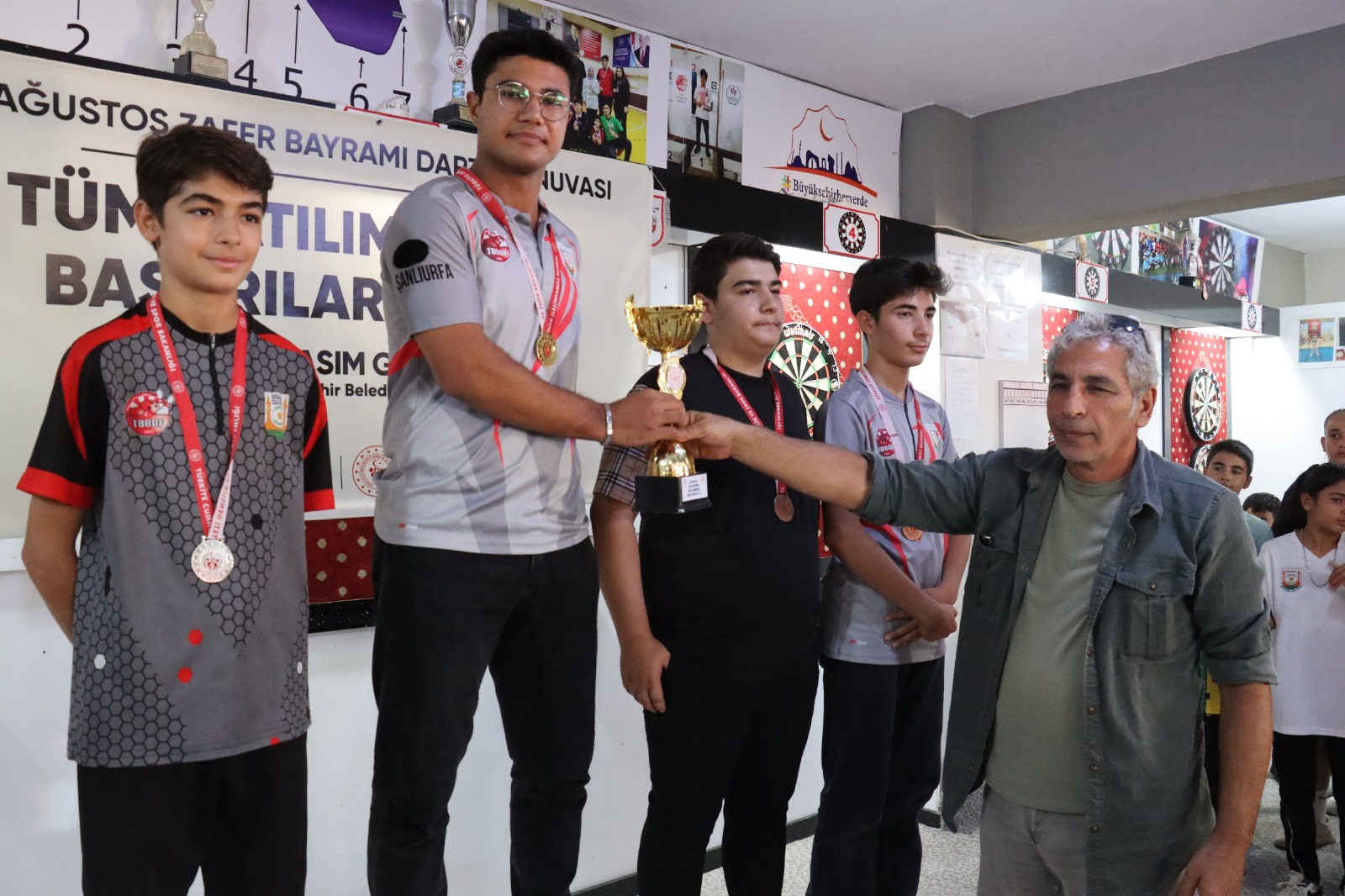 30 Ağustos Zafer Bayramı kutlamaları kapsamında Şanlıurfa Büyükşehir Belediyesi tarafından düzenlenen ve iki gün süren Dart Turnuvasında dereceye giren öğrencilere ödülleri verildi.